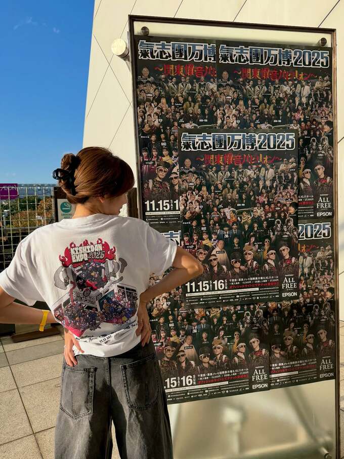 投稿写真からは、氣志團メンバーと一緒に撮影したショット、「氣志團万博2025」と大きく書かれた会場内の看板前でのポーズ写真、イベントポスターを見つめる後ろ姿など、会場の様々な場所で楽しんだ様子が伝わってきます。
