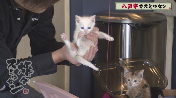 保護した猫を治療・トレーニングして、新しい飼い主さんとマッチングする活動をしているそうです。齋藤アナ、生後5~6日という猫を抱っこしてみます。