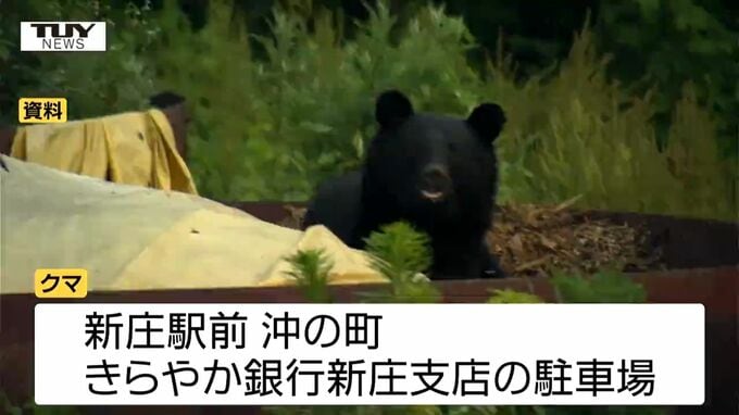 クマは、新庄駅前にある沖の町のきらやか銀行新庄支店の駐車場にいて、体長およそ50センチの子グマとみられています。