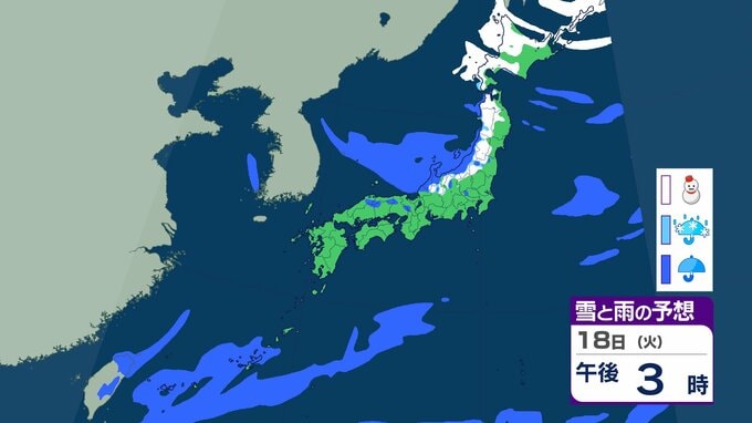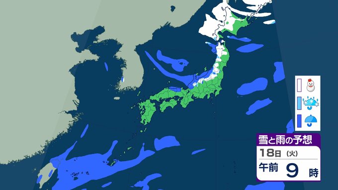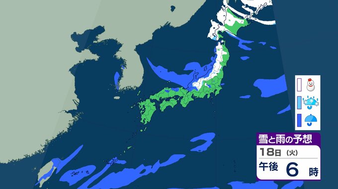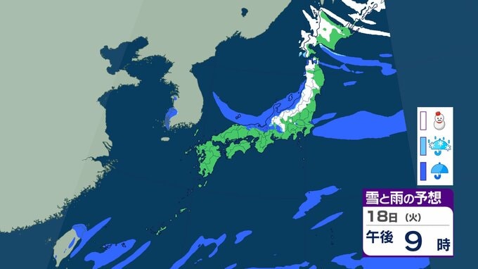 今季一番の強い寒気南下、北日本で荒天 九州の山地でも積雪のおそれ 19日にかけて交通障害などに警戒【雨雪シミュレーション】