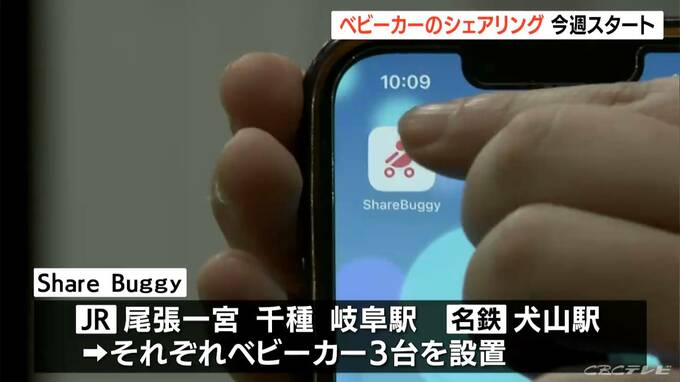 JRの尾張一宮、千種、岐阜の各駅と、名鉄の犬山駅あわせて4駅で導入され、それぞれベビーカー3台が置かれる予定です。ベビーカーは改札の外のボックスに入っていて、専用アプリで利用状況を確認し、借りた駅と別の駅で返すこともできます。