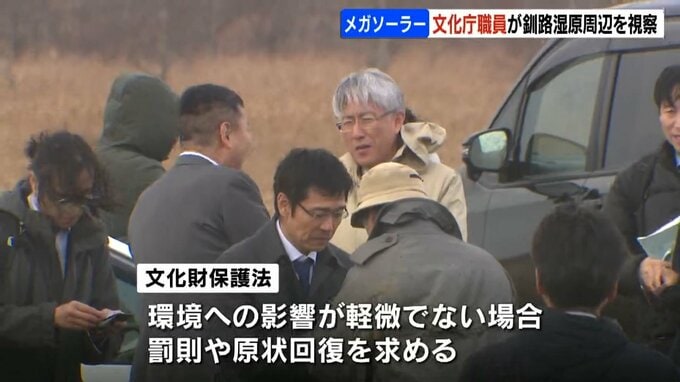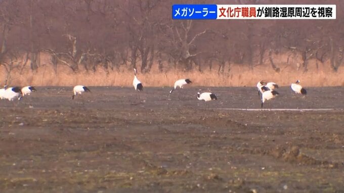 大阪の日本エコロジーが進める今回のメガソーラー事業は希少生物への悪影響が懸念されていて、文化庁の職員はタンチョウやオジロワシなどの繁殖や生育に工事が影響を与えていないか、文化財保護法の観点から確認しました。