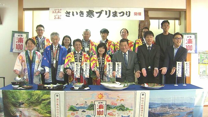 「さいき寒ブリまつり」は、12月6日から市内の飲食店など21店舗が参加し、旬のブリを使った特別メニューが提供されます。参加店舗のひとつ、ひょうたん小路では、関係者に寒ブリ御膳や海鮮丼が披露されました。