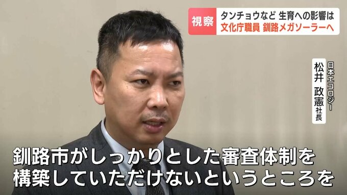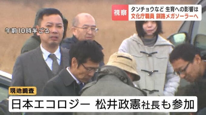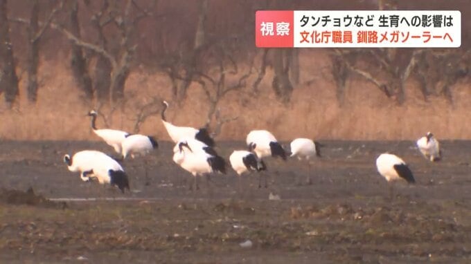 北海道の釧路湿原周辺で進められているメガソーラーの建設。タンチョウなど希少生物への影響を調べるため、文化庁の職員がきょう、現地を訪れました。