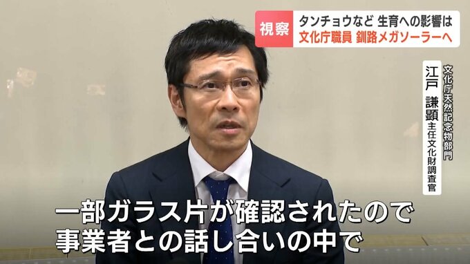 タンチョウがついばむと傷つくおそれがあるガラス片やプラスチックが現場に残っていないかなどを調べ、その後、文化庁と道、日本エコロジーの三者で協議しました。