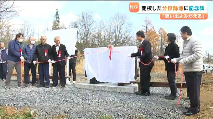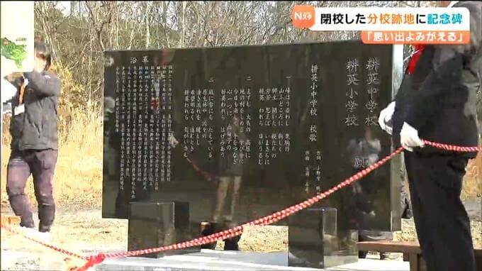 長く親しまれた校歌や学校の沿革が記されています。児童数の減少に伴い閉校した宮城県栗原市の小学校分校の跡地に記念碑が建立され17日、卒業生らにお披露目されました。