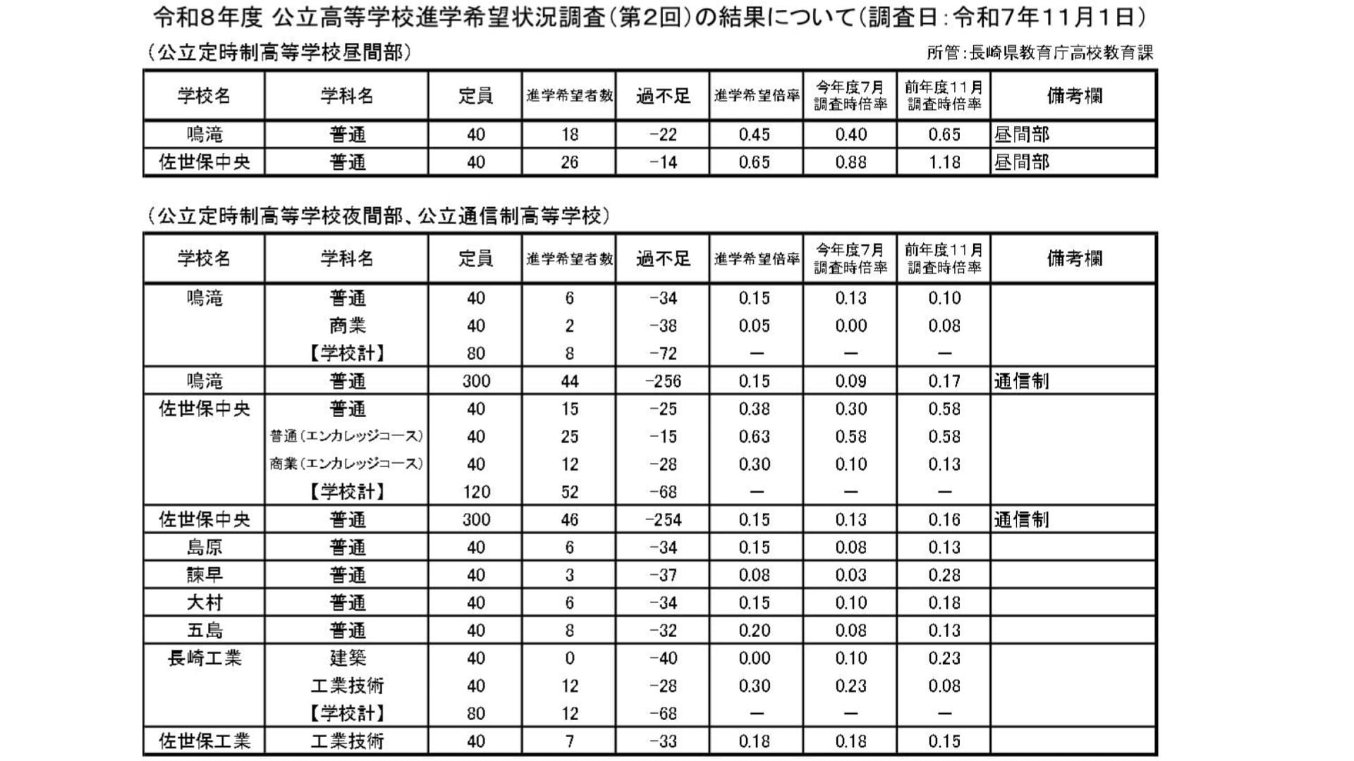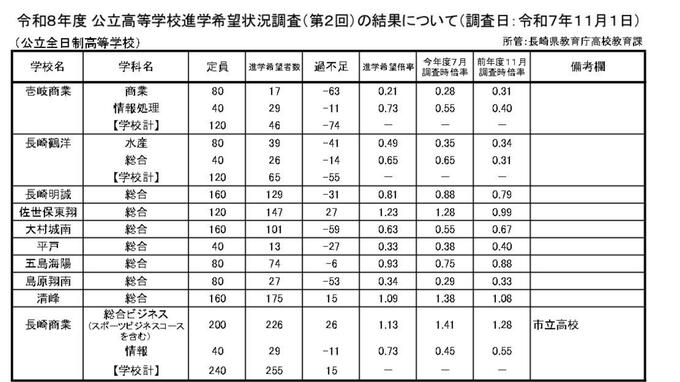 定時制と通信制の進学希望倍率は、すべて「1」を下回っています。