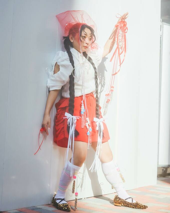 そして「私が、スタイリストさんとなにか一緒に作るならやってみたかったのが『なわとび』を衣装に取り入れることでした!」「なわとびは改めて見てみるとなんか可愛いし、太陽の光に透けたりすると意外とキレイだったりするので『それを衣装に取り入れたい!』という願望が、いにしえからありました。」と、説明しました。