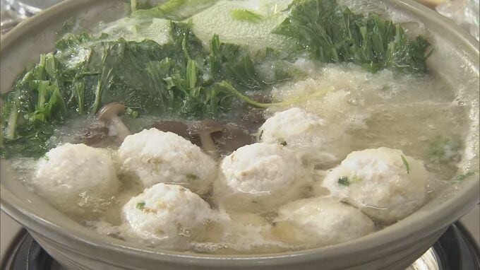17日午後、愛知県田原市で開かれた試食会。つくねや鍋、フライなどがずらりと並び、地元の飲食店やホテルなどが12品を出品しました。