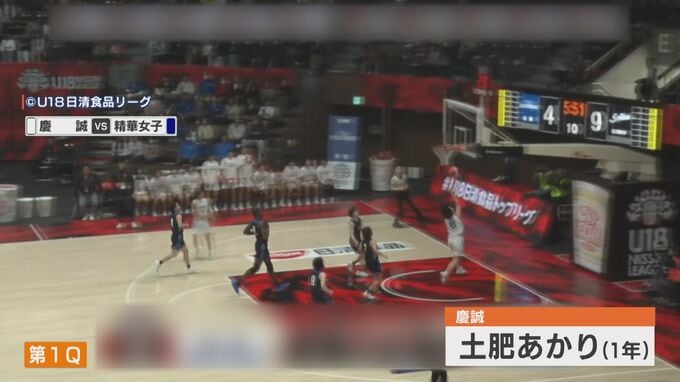 第1クォーター、リバウンドから速攻で、1年の土肥あかり。