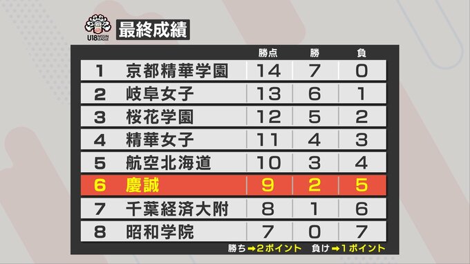 慶誠は2勝5敗で悔しい負け越し、最終順位は8校中、6位でした。