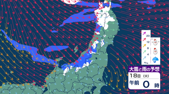 本州でも雪の予想、どこで降る? “爆弾低気圧”の通過で冬型の気圧配置が強まる見込み…北日本は大雪に十分注意、北海道では真冬日に【雪のシミュレーション】 テレビ高知 2025年11月17日(月) 19:30 国内 天気 18日から19日にかけて、北陸でも雪が降る見込みで平地でも積雪となるところがあるでしょう。積雪や路面の凍結による交通障害に留意してください。 18日~19日にかけては、雪と寒さにご注意ください。
