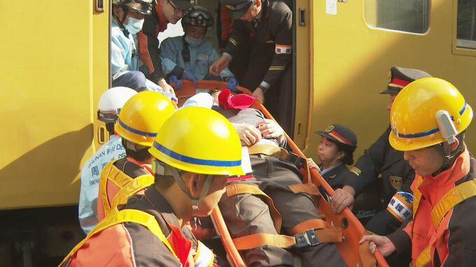 訓練では乗客の安全確保や警察や消防との連携、けが人の速やかな応急処置などを確認していました。