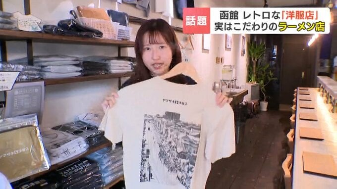 「洋服も1枚1枚手刷りで函館の職人に作ってもらっています。まずラーメンを楽しんでもらい、洋服の方もぜひ見ていってほしい」