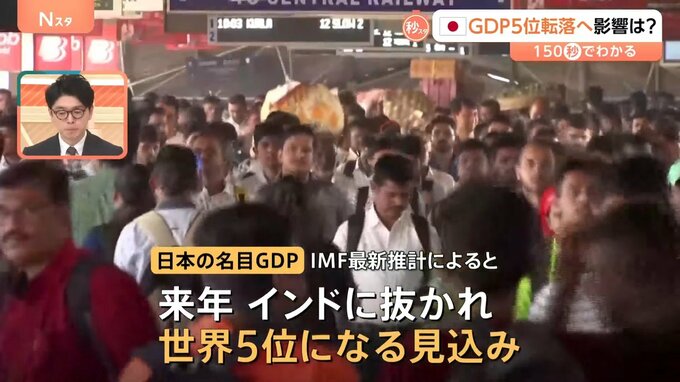 また10月、IMFが発表した見通しによると、2026年、日本の名目GDPはインドに抜かれ、世界5位になると予測されています。