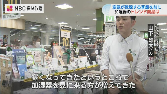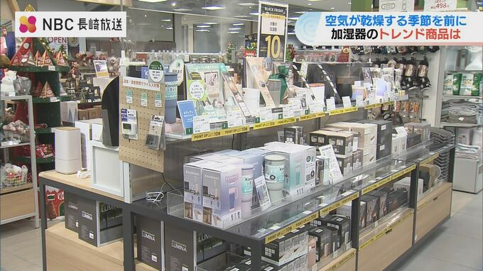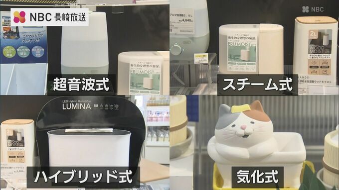 これから購入を検討する人も多い加湿器。長崎市のアミュプラザ長崎4階にある「ハンズ長崎店」には、加湿器を集めた特設コーナーが設けられ、約30点の加湿器が並んでいます。