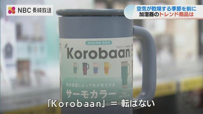 「「Korobaan」ということで、転ばないっていうような意味。取っ手があるのでデスクまわりとか家事でいろんなところに持って行って必要な場所を加湿できます。(倒れないので)子どもやペットがいる家庭におすすめです」