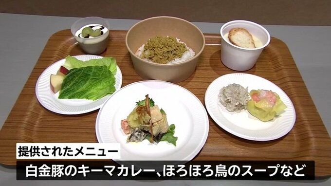 会場には、市内のホテルのシェフが作った地域のブランド肉・白金豚を使ったキーマカレーや石黒農場で飼育されたほろほろ鳥のスープなど、本格的な料理が並びました。