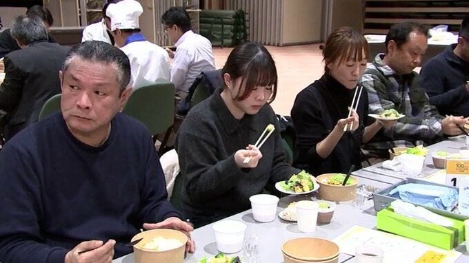 参加者は盛り付けや配膳を分担しながら準備を進めたあと、シェフが作った料理を味わっていました。