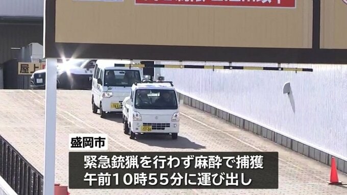 市は弾丸が跳ね返る危険性があるため緊急銃猟は行わず、麻酔で捕獲し、午前10時55分に運び出されました。