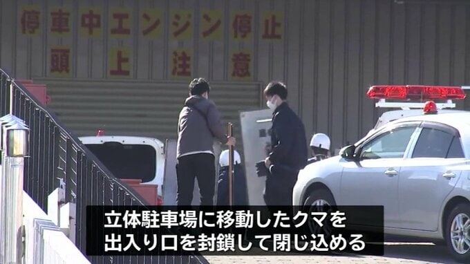 クマはその後立体駐車場に移動したため、店のスタッフと警察が出入り口を封鎖して閉じ込めました。