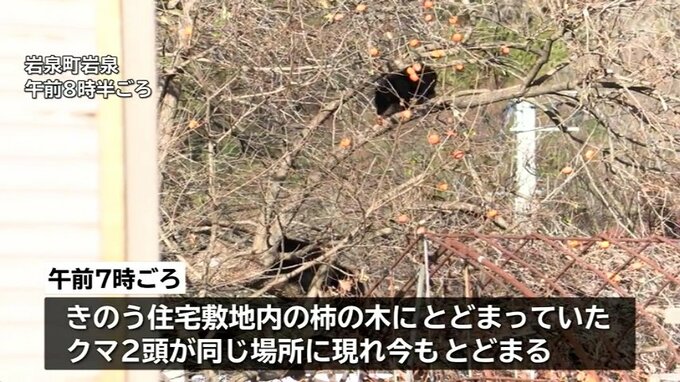 一方、岩泉町岩泉では18日午前7時ごろ、17日に住宅の敷地内の柿の木にとどまっていた親子とみられるクマ2頭が再び現れました。