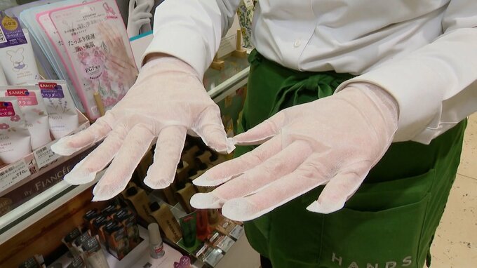 「寝る時にしっかりハンドケアをしていただきたいので、ハンドマスクが今年入ってきた商品でおすすめの商品です」