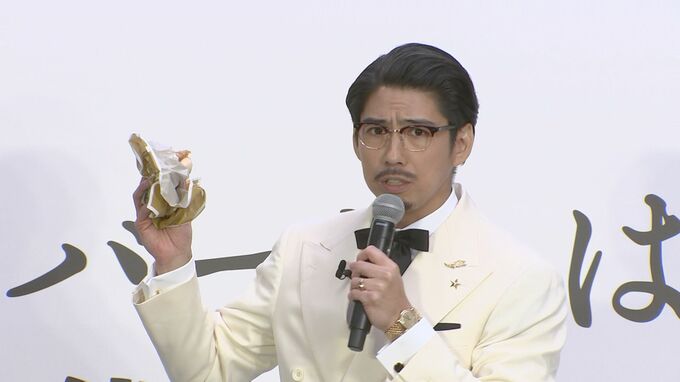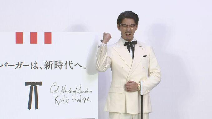 ゆったりとした歩き方で登壇し、すっかりカーネル・サンダースになり切った賀来さんの様子に、通りがかった一般客からは笑いが起きました。