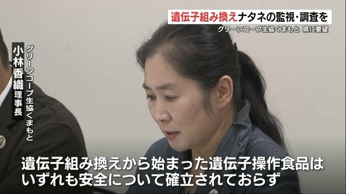 「グリーンコープ生活協同組合くまもと」が、遺伝子組み換えナタネの監視や調査などを求める要望書を熊本県に提出しました。要望書と約1万8000人分の署名を提出したのは、食品の販売などを行う「グリーンコープ生…