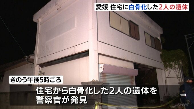 住宅から2人の遺体が見つかりました。きのう午後5時ごろ、愛媛県四国中央市の住宅で、白骨化した2人の遺体を警察官が発見しました。2人は台所と洋間に倒れていて、性別などはわからないということです。交番に届け…