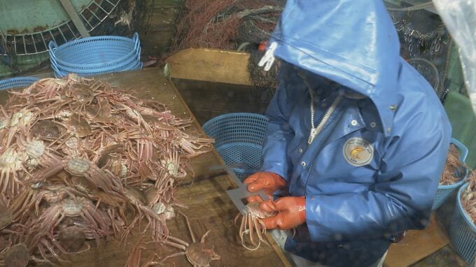 漁師「規格の大きさと仕分けをしている。あとはカニの質と」