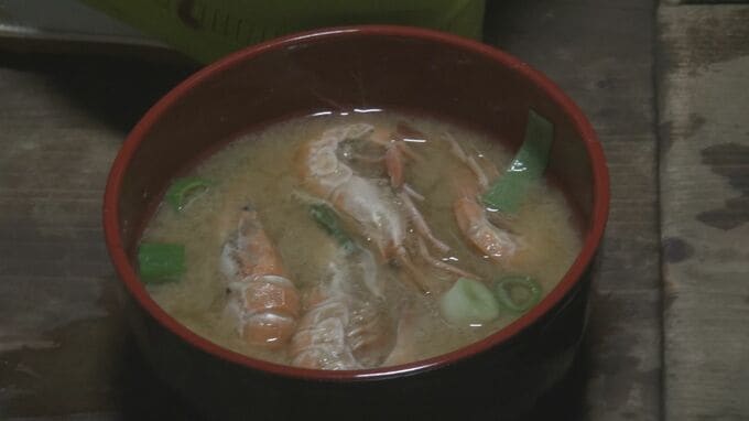 この日は、漁師特製・トラエビの味噌汁でした。また、取材班にも振舞っていただきました。