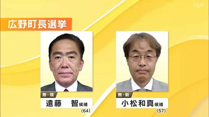 広野町の町長選挙に立候補したのは、届け出順に現職で4期目を目指す遠藤智さん(64)と、新人で元・町の復興企画課長の小松和真さん(57)です。