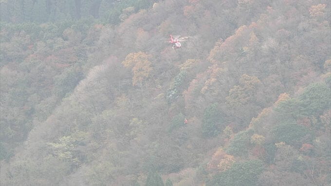 小型航空機が墜落したのは八女市星野村の山中でレスキュー隊がヘリコプターから地上に降下して救助活動を進めています。