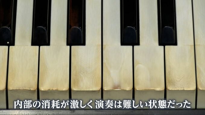 ピアノは、長年の使用により内部の消耗がはげしく演奏は難しい状態でした。