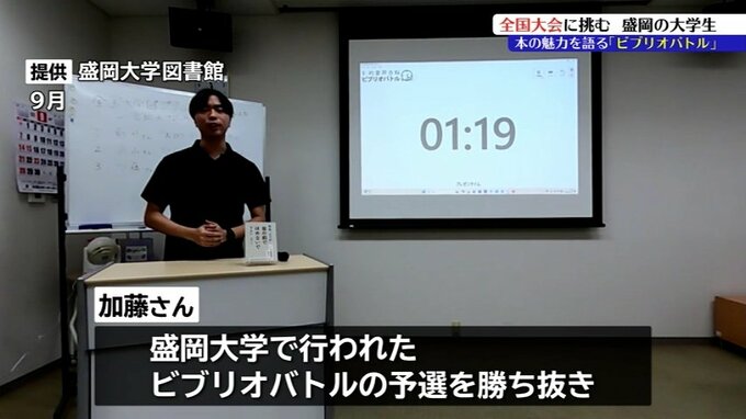加藤さんは盛岡大学内で行われたビブリオバトルの予選を勝ち抜くと、10月に仙台市で開かれた東北大会で見事、初優勝を果たしました。