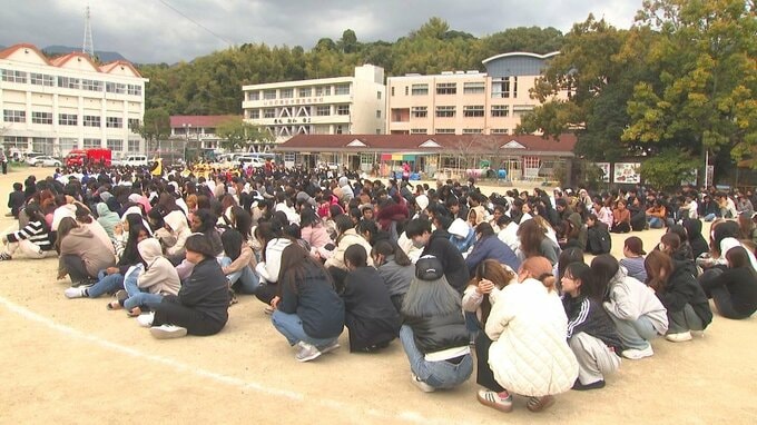 大分県別府市の溝部学園で18日、南海トラフ巨大地震を想定した総合防災訓練が行われ、学園の関係者1400人が参加しました。