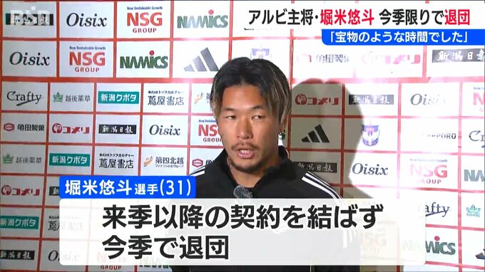 クラブによりますと、堀米選手と来期以降の契約を結ばず、今季をもって契約満了で退団するということです。