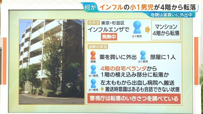 11月17日、東京都杉並区のマンションで小学1年生の男児が転落する事故がありました。