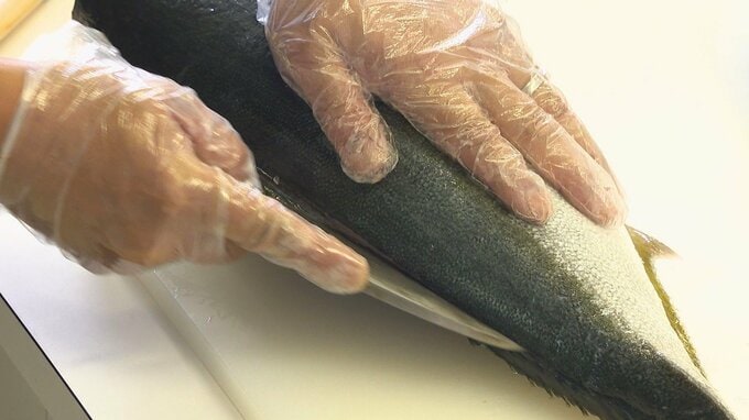 大分市の小学校で県産ブランド魚「かぼすブリ」の解体実演と試食会が開かれ、子どもたちが海の幸の魅力を学びました。
