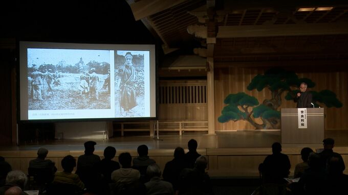 シンポジウムでは目をギョロリとさせて見得を切ることから「目玉の松ちゃん」の愛称で親しまれた尾上松之助を映画批評・映画研究者の世良利和さんが解説。