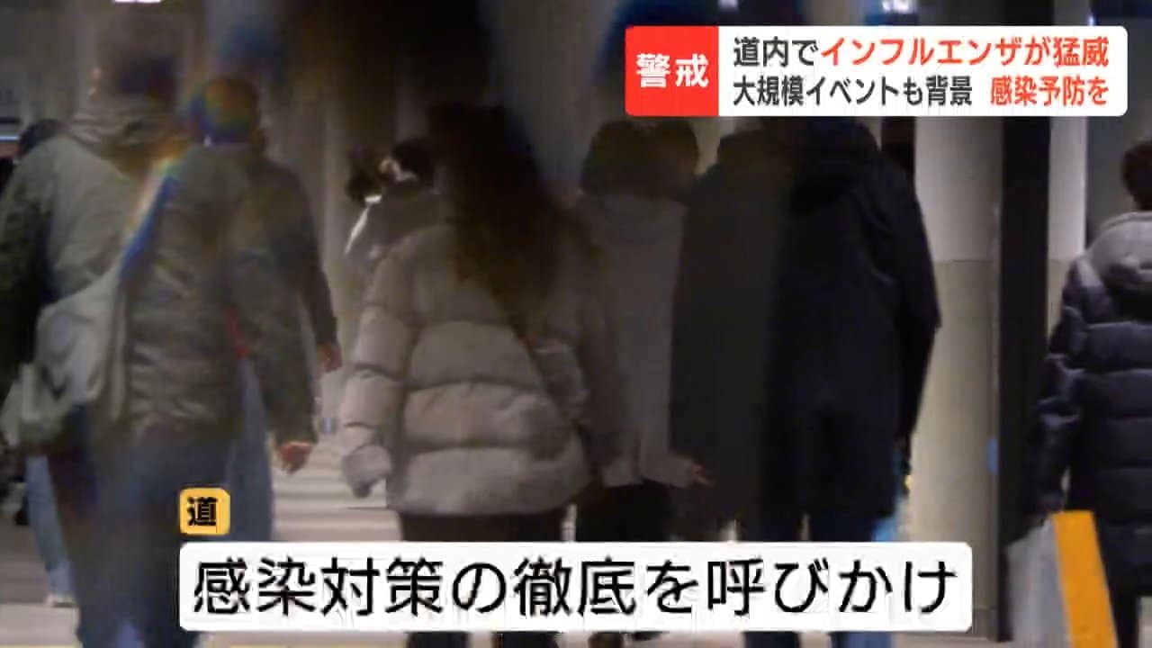 インフルエンザは閉鎖された空間に人が密集すると感染拡大のリスクが高まるとして、北海道は、手洗いやマスクの着用など感染予防の徹底を呼びかけています。