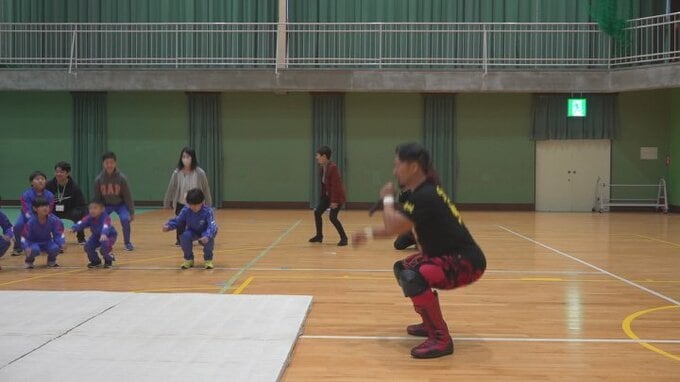 また子どもたちともプロレス式のトレーニングで交流し、秋が深まる山里に元気な掛け声が響いていました。
