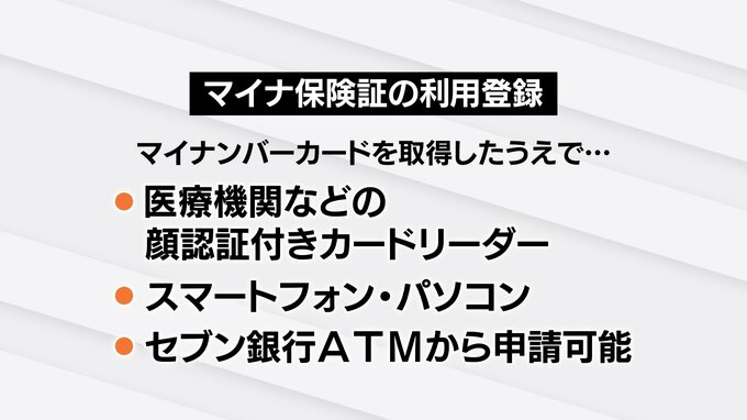 利用登録の申請は、医療機関などにある顔認証付きカードリーダー、お手持ちのスマートフォンやパソコン(マイナポータル)、セブン銀行ATMから行うことができます。