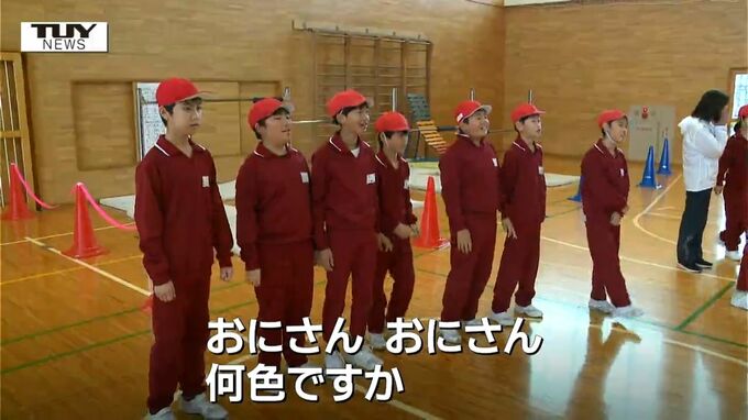 この取り組みは、酒田市が身体を動かす機会が少ない児童の体力向上のきっかけになればと2022年から行なっているもので、きょうは酒田市立新堀小学校に東北公益文科大学女子サッカー部の3人が訪れ、5・6年生の児童と鬼ごっこをしました。