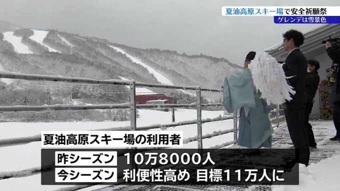 近づく冬、早くもスキーの話題です。国内有数の積雪量で人気を集める北上市の夏油高原スキー場で18日、安全祈願祭が行われました。
