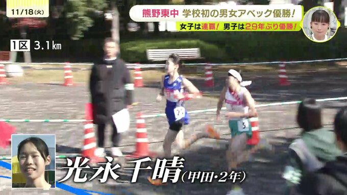 エースが集う1区では甲田の2年生・光永千晴が最終盤の追い上げで見事、区間賞を獲得。