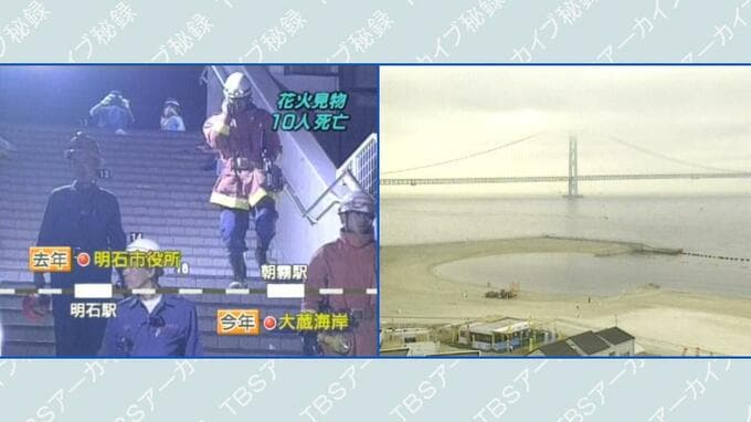 まず花火大会は前年まで明石市役所付近で開かれていましたが、周辺の交通規制による渋滞が激しくなったため、この年から駅の南側にある大蔵海岸に会場が変更となっていました。