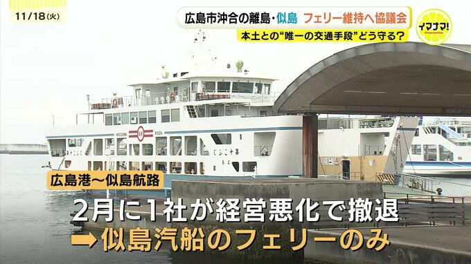 広島港と似島を結ぶ航路は、ことし2月に1社が経営の悪化から撤退し、現在は、似島汽船のフェリーが唯一の島と本土との交通手段となっています。
