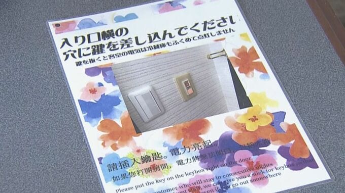 このホテルでは、宿泊客の約半数が中国からの旅行客で、館内の利用案内にも目立つように中国語が並んでいます。竹内代表は、この先もキャンセルが続くのではと危惧しています。